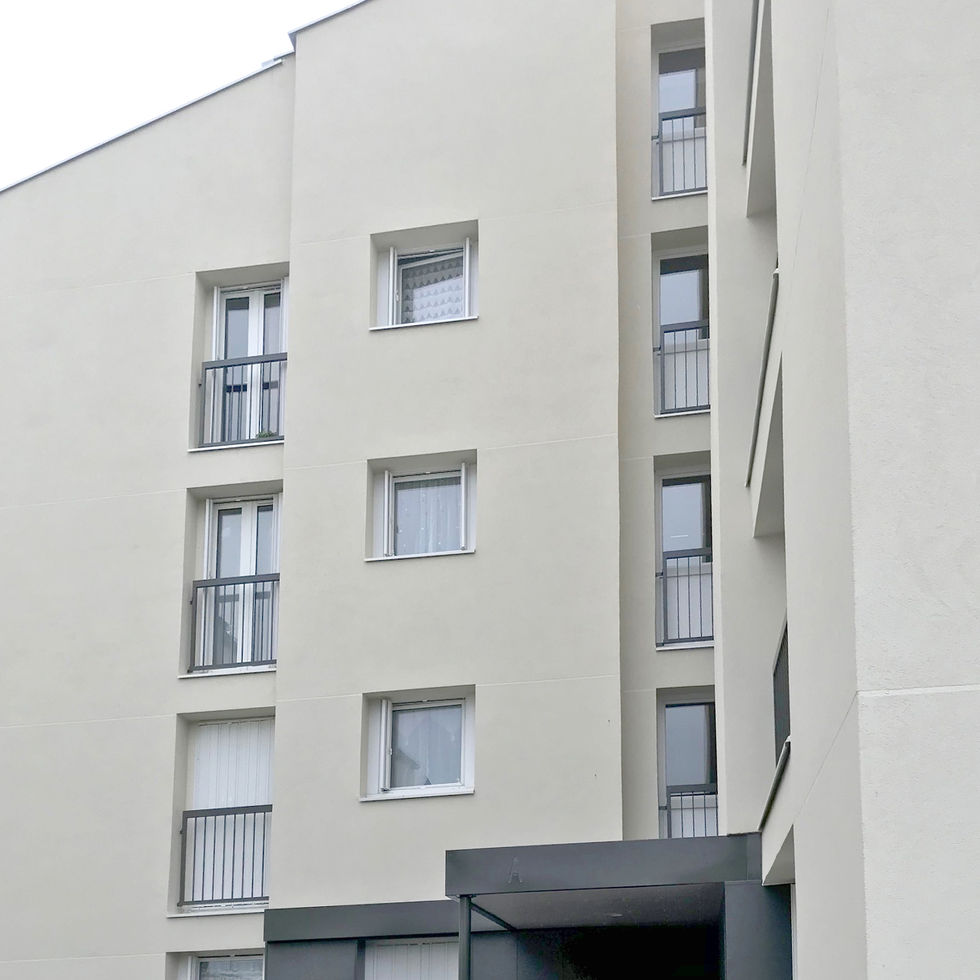Résidence de 46 logements répartis dans 3 bâtiments R+4 + 1 ERP (La Poste) située dans un périmètre protégé "Monument historique".
